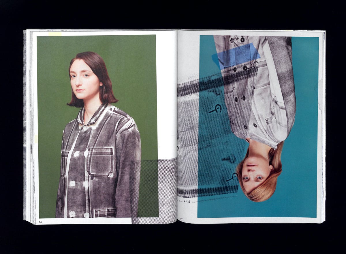 Elisa van Joolen’s new publication One-to-One Reader refers to her working method in which items of clothing became large-sized printing tools, covered in black and blue ink. Each clothing item served as a stamp, and was simultaneously being stamped on, thus creating a chain reaction and making each clothing item an original and a copy. As such the project One-to-One offers new perspectives on reproduction – it allows us to look beyond the status conveyed by the label and see the actual, material properties of clothing.