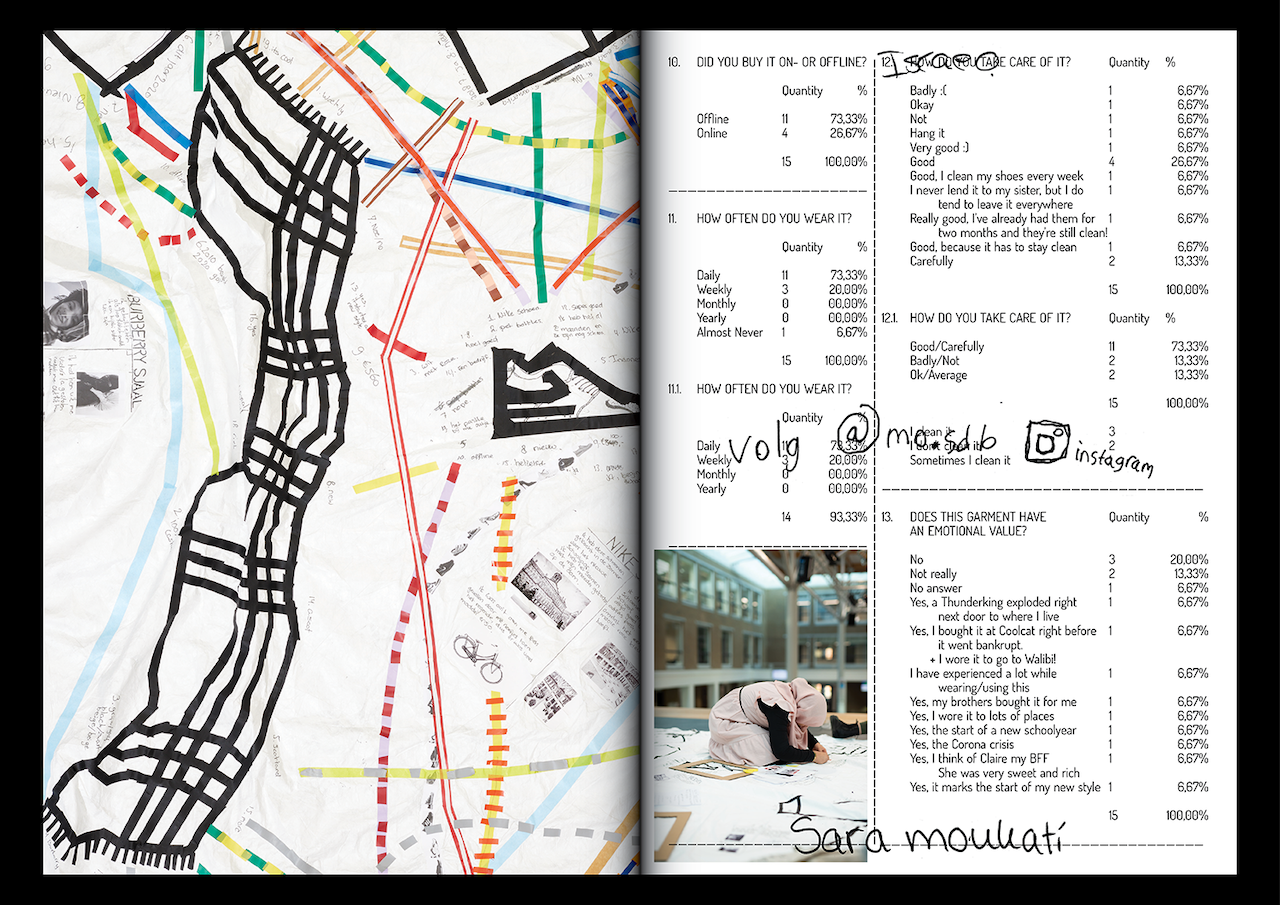 Type: softcover\ Dimensions: 210 mm x 297 mm portrait\ Pages: 40\ Art Direction: Elisa van Joolen\ Research assistant: Anouk Beckers\ Text: Ali, Dina, Fatima, Hafsa, Halime, Israe, Khaled, Mohammed, Rabia, Safae, Sara, Youssef, and Zülal\ Graphic design: Bart de Baets\ Release date: Spring 2021\ Binding: staples\ Edition: 250\ Color: full color – Offset printed\ Printer: Flyeralarm\ Language: English\ Text editing: Melanie Bomans\ Made possible by: Amsterdam Museum, de Appel\ Production: Warehouse\ Production assistant: Anouk Beckers