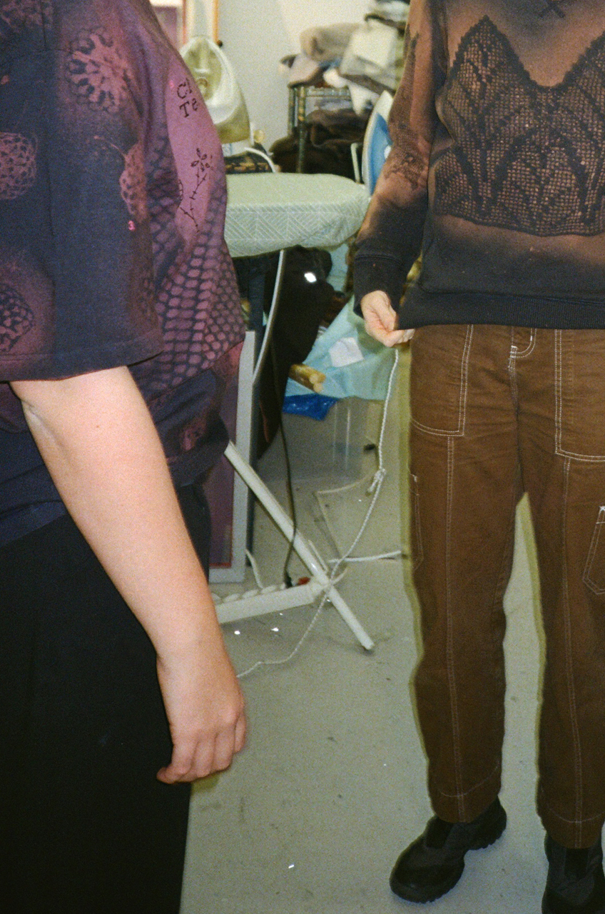 SKHSS, a design duo consisting of Lejla Vala Verheus and Mika Perlmutter, centres around a deep exploration of traditional and contemporary female-driven textile crafts and a feminization of utility wear and objects. Expanding upon the relationship between function and decoration, SKHSS juxtaposes intricate historic techniques such as crochet with modern printing methods. The aim of the project is to reintegrate discarded materials back into daily life. Through prolonging the usage of textile crafts in the medium of fashion, the boundaries between techniques and aesthetics of past-present-future are ultimately blended and blurred.