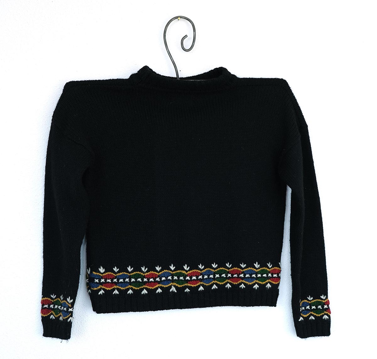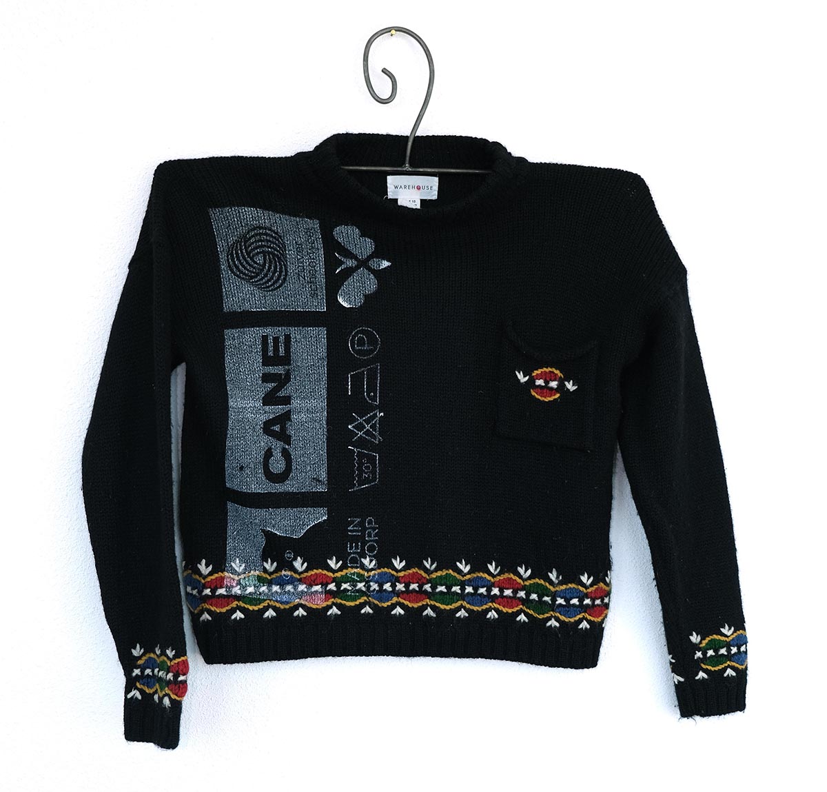 Type: Wool jumper with silkscreen artwork\ Colour: Black\ Size: M\ Material: Wool.