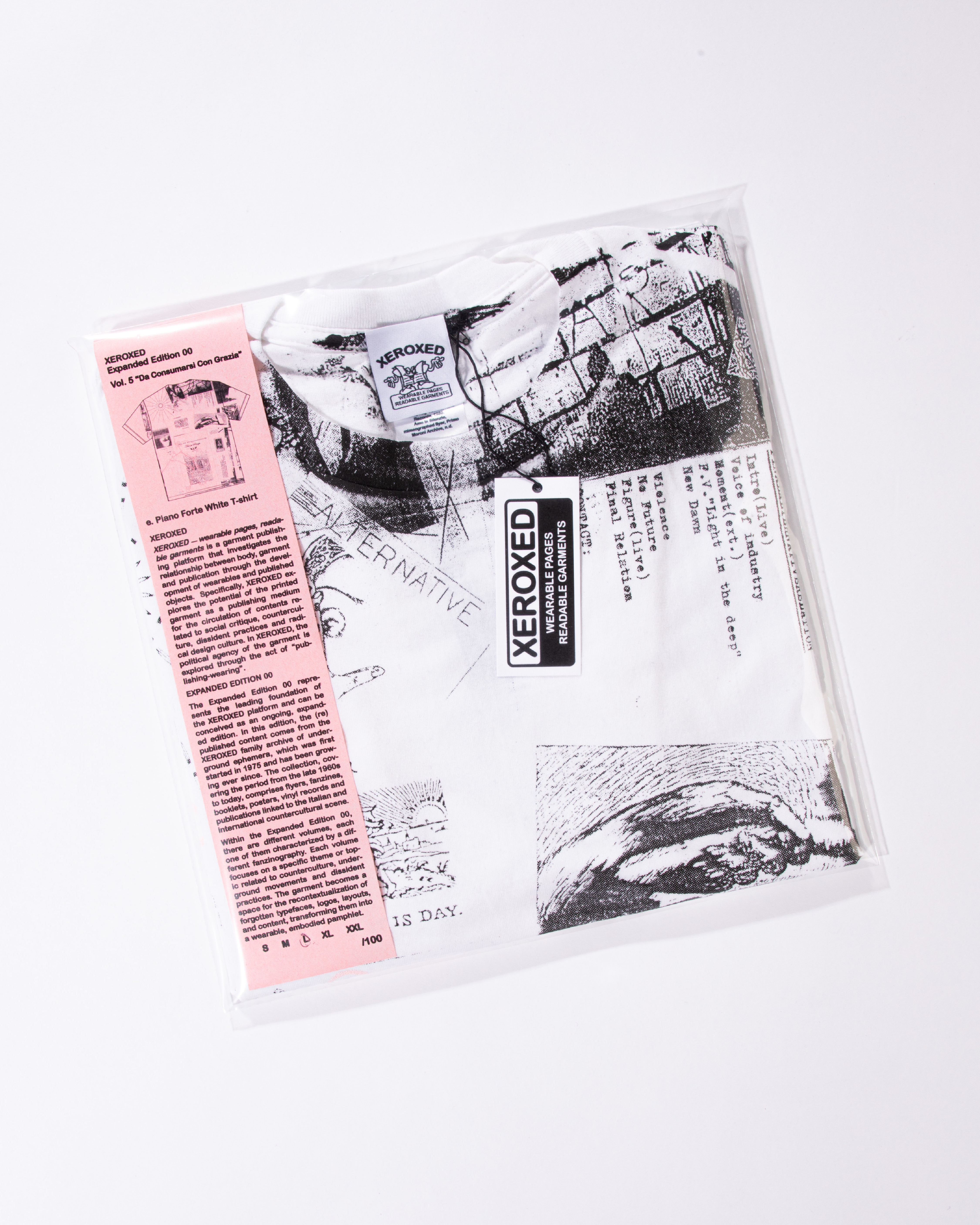 Xeroxed is a garment publishing platform that investigates the relationship between body, garment and publication through the development of wearables and published objects. Specifically, XEROXED explores the potential of the printed garment as a publishing medium for the circulation of contents related to social critique, counterculture, dissident practices and radical design culture.