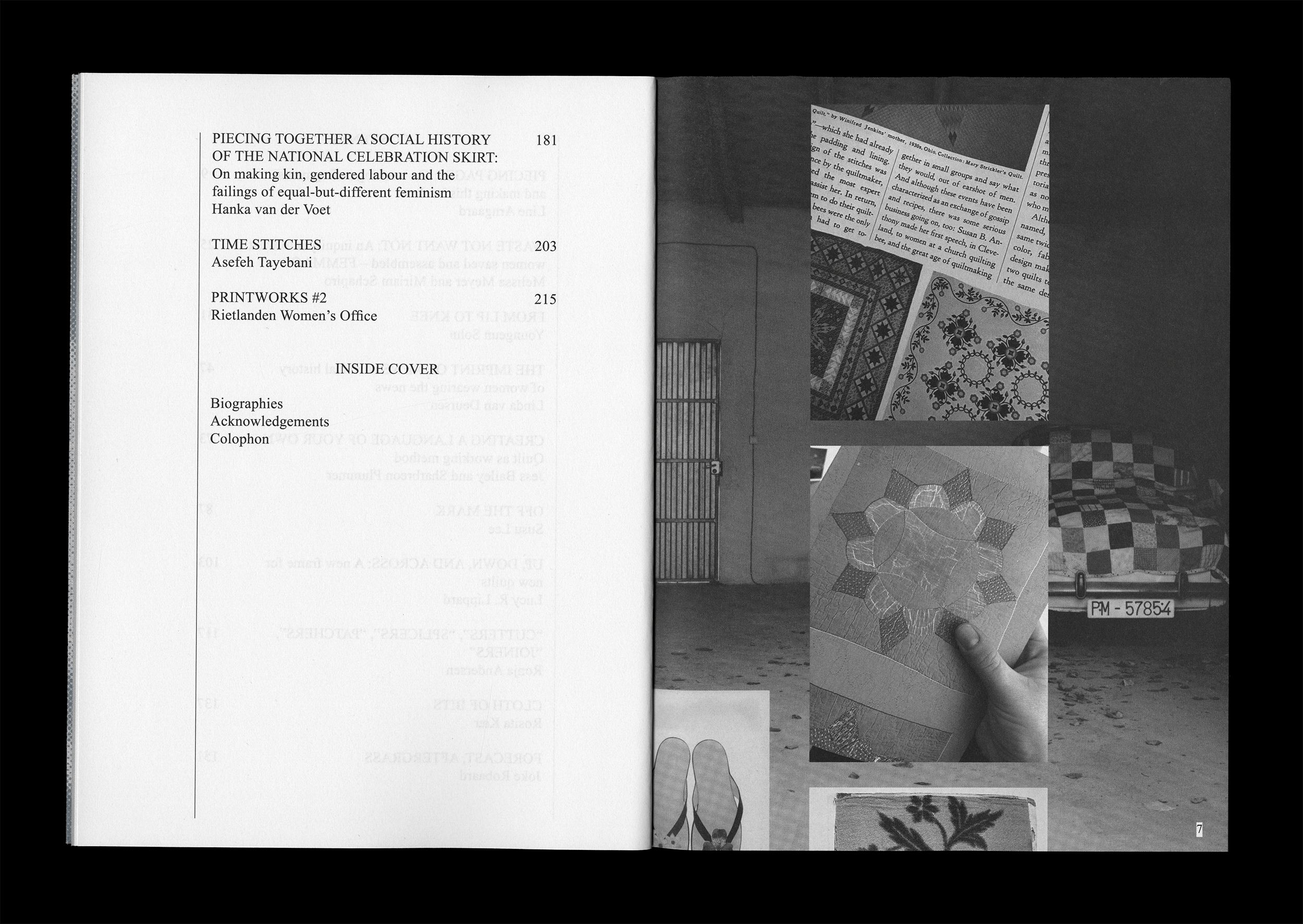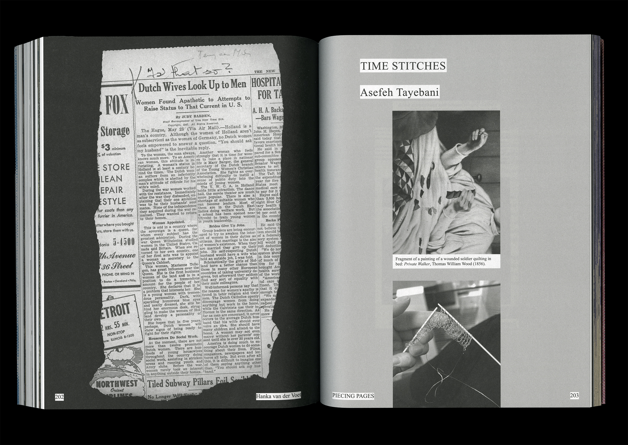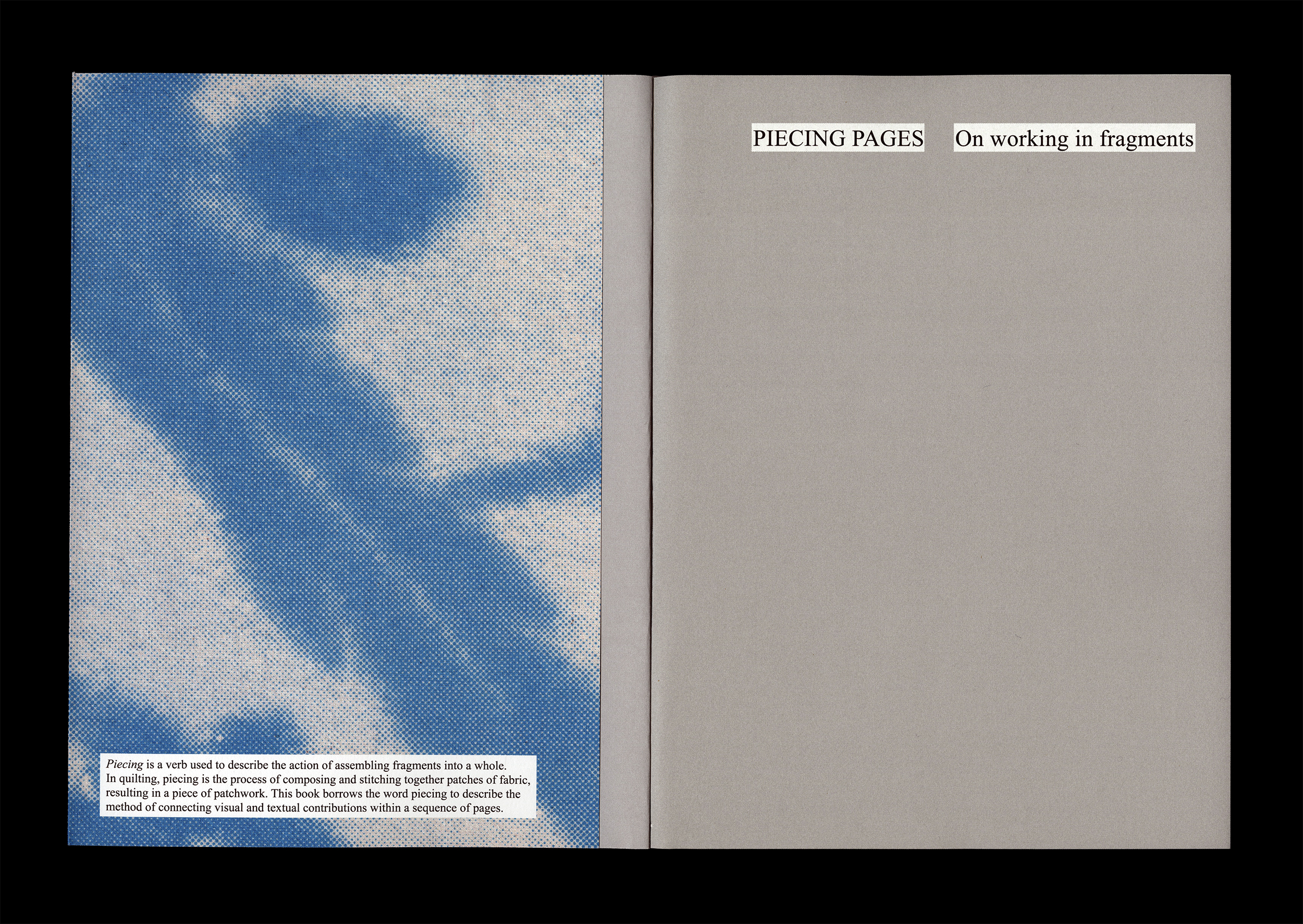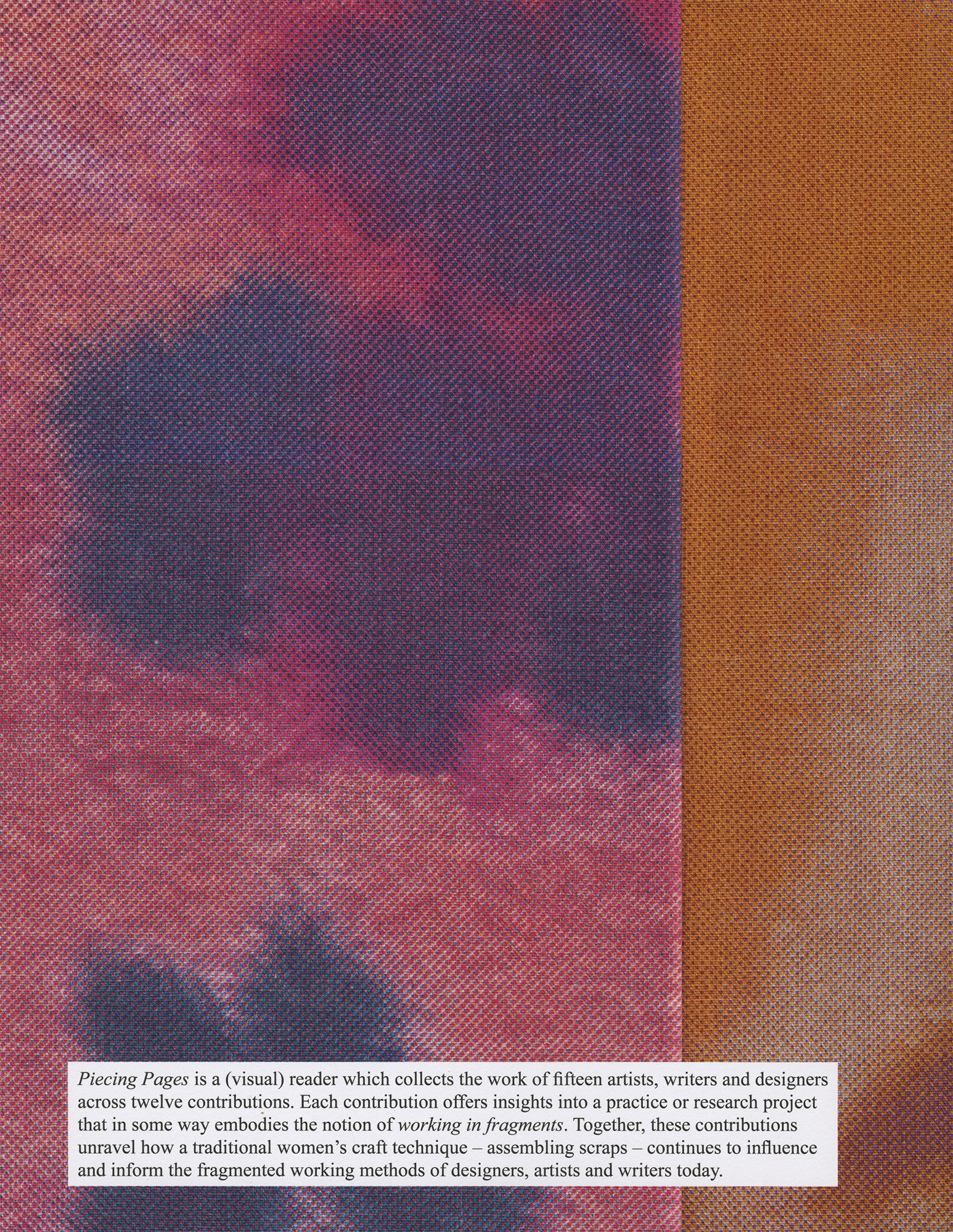 Piecing Pages is a (visual) reader which collects the work of fifteen artists, writers and designers across twelve contributions. Each contribution offers insights into a practice or research project that in some way embodies the notion of working in fragments. Together, these contributions unravel how a traditional women’s craft technique – assembling scraps – continues to influence and inform the fragmented working methods of designers, artists and writers today.