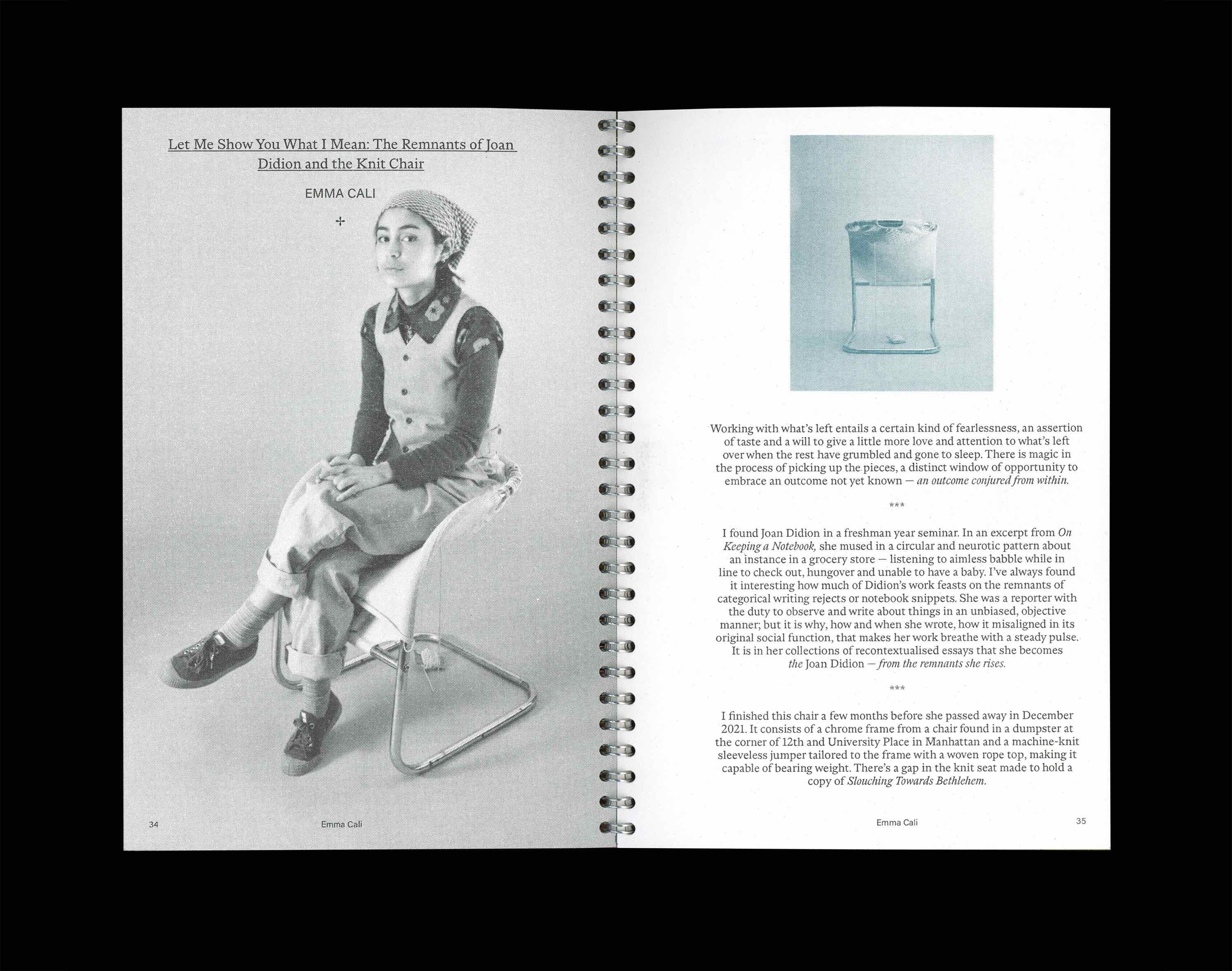 160 x 240 mm, 84-pages, wire-bound, risograph printed in black & teal on 120gsm Context Natural, cover Fenner Flora Giglio 240gsm