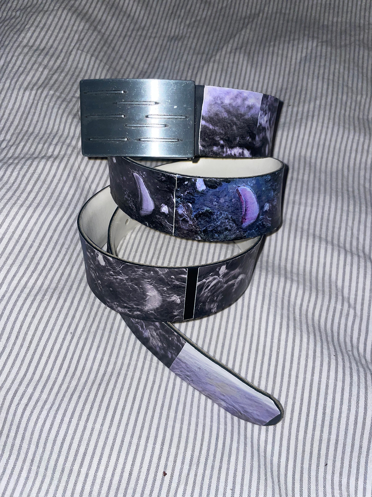 Pink glass in salt water, melted video still frames, unisex belt, one size, one piece, faux-leather.